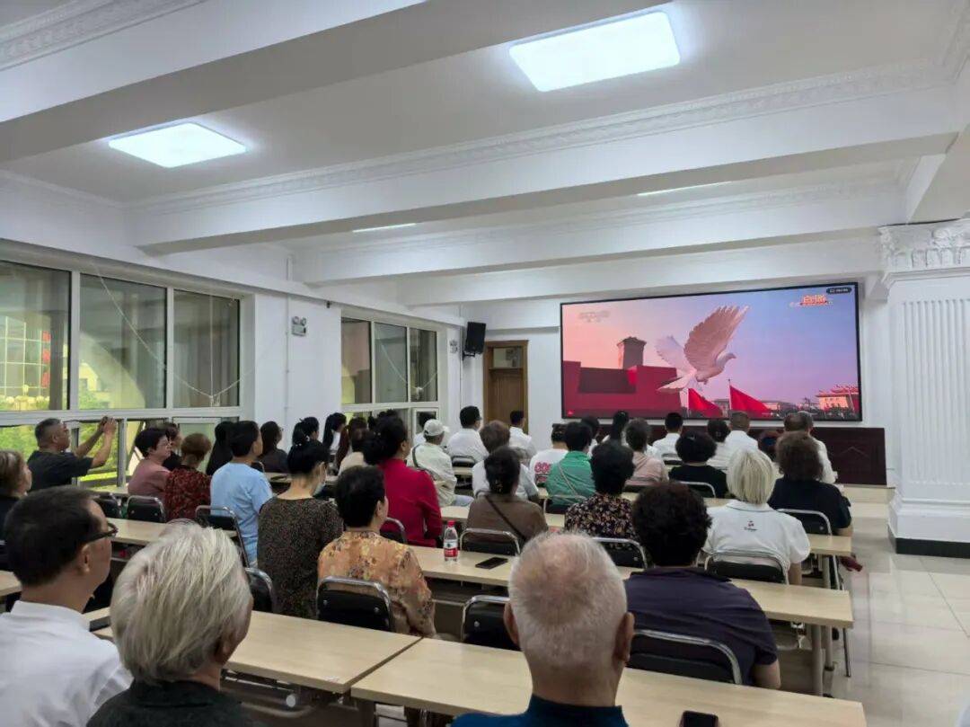 9月3日上午,道里区兆麟街道党工委、办事处组织机关、社区党员干部、辖区居民代表共60余人,在兆麟街道新时代文明实践所集中观看纪念中国人民抗日战争暨世界反法西斯战争胜利80周年大会直播。