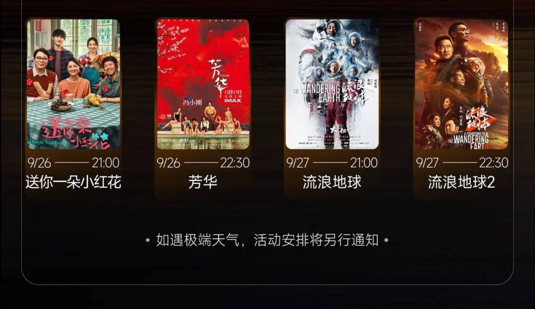 每周五/周六剧院广场每晚2场影片轮播,在光影与江水间,把夜晚过得更chill。