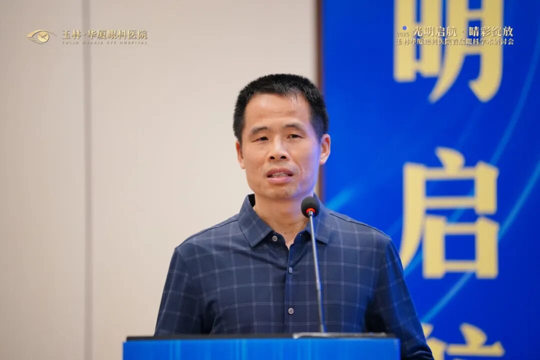 广西医科大学第一附属医院陈金卯博士在致辞中表示,期待未来玉林华厦眼科医院能举办更多高水平的眼科学术会议,以汇聚前沿智慧,引进新思想、新技术,共同推动本地眼科诊疗水平与学术科研能力的持续提升。