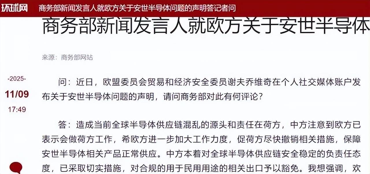 然而,2024年12月,美国将闻泰科技列入了出口管制实体清单,原因是“国家安全担忧”。这一举动直接影响到了安世半导体,因为它是闻泰科技的全资子公司。接着,2025年9月,美国又出台了新的“50%规则”,即如果一个公司被列入出口管制名单,那么其控股50%以上的子公司也将受到同样的限制。这使得荷兰政府开始紧张,并在2025年9月30日,动用了冷战时期的“货物可用性法”对安世半导体进行临时干预,荷兰经济事务部部长签发命令,赋予政府否决或逆转公司决策的权力,特别是如果这些决策对荷兰或欧洲的利益有害。荷兰方面认为安世半导体的公司治理出现了严重问题,并担心芯片供应链可能中断。