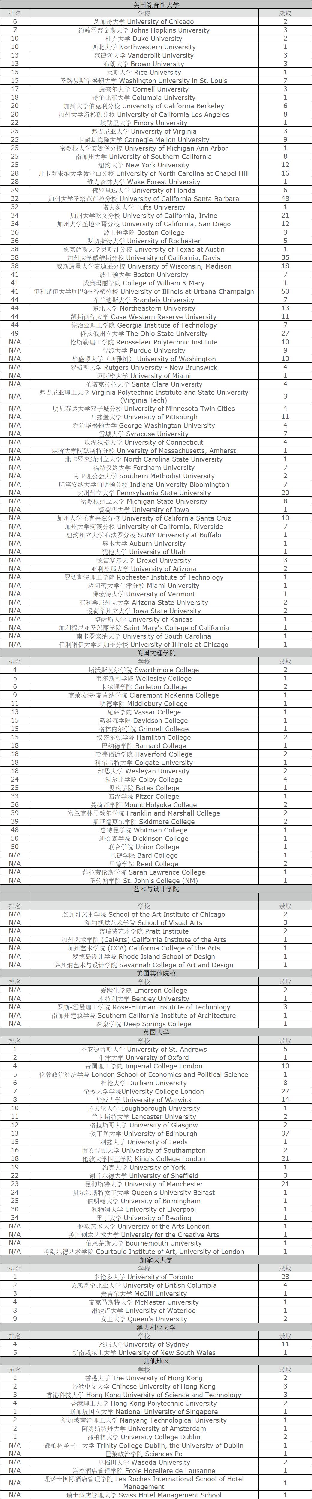 截止至2023年8月7日,共收到来自包括美国、英国、中国香港、加拿大、澳洲、瑞士、爱尔兰等9个国家和地区名牌大学的811份录取通知。奖学金总数超1700万元人民币。