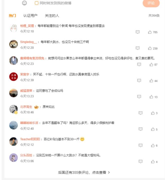 反对者则纷纷吐槽踩雷经历。有人在直播间买的JJ级车厘子,收到的全是XL小果,一半都软了,客服只赔20元优惠券。上海网友实测天猫超市预售3J果,用测量卡一看,大部分连2J都达不到,退货还得自己付运费。有人怒怼营销套路,质疑年年喊大跳水,实际价格始终在30元以上,十块三斤的车厘子根本找不到。这种水果之所以年年上热搜,主要是跟风炒作,溢价全在营销上,实际成本并不高。