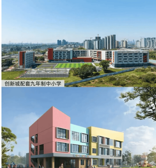 A2:番广附创新城学校为九年一贯制学校,预计2025年9月开学。学校距离项目约1.5公里,将为项目业主子女提供校车接送服务,解决家长接送难题。