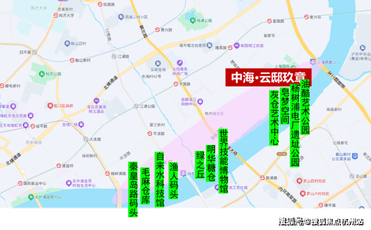 中海·云邸玖章周边环绕的小学、中学、大学、医院、公园,以及大量的高能级的商业、产业、文化设施密度非常大。再加上距离黄浦江500米的亲江距离。