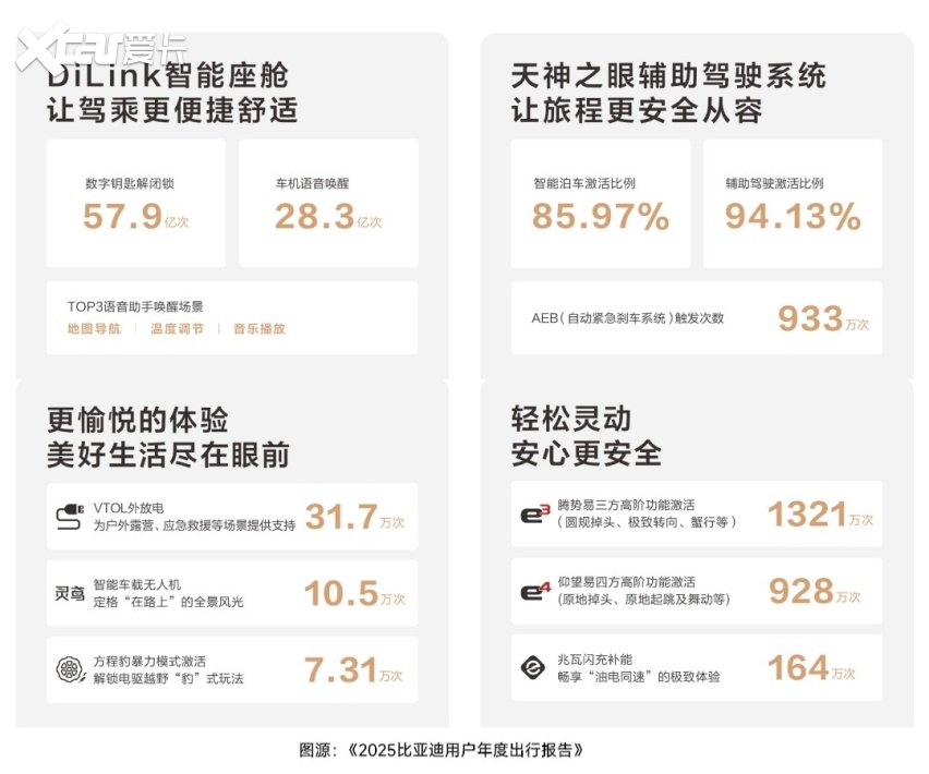比亚迪给用户提供的情感体验,不仅体现在产品和生态,更在于每一次面对面的陪伴中。从“王朝盛典”到官方俱乐部“我迪朝友荟”的每一场奔赴,“朝粉”共同见证中国品牌出海壮阔、体验赛道激情、探寻华夏根脉、乐享乐高亲子时光,让东方底蕴与生活暖意相融。海洋四周年盛典的奔涌相聚,让不一样(young)的海粉们在热爱中同频共振;与领潮体验官共创百万海鸥全球之夜,一同解锁潮流出行的美好相伴。方程豹从用户大会的热血相聚,到阿拉善英雄会的越野同行、乌兰布统冰雪季的豹团集结,更以“方程豹好人好豹公益计划”的责任担当,让“买一台车,交一群朋友”的用户精神根植于每一位豹友心中。腾势与“势友们”从戈20的征途并肩,到“腾势之夜”盛典上共同见证第30万辆D9交付,再到岁末温馨的家宴相聚,始终与用户携手共创共享,以真诚陪伴定义新时代豪华出行的温度。仰望面向车主打造“仰望商业研究院”,构建“中国企业家朋友圈”;在“产品经理面对面”倾听用户心声,与用户深度共创,驱动产品与服务精准迭代;更以一年一度的“全国车友会会长论坛”,凝聚品牌初心,汇聚用户同心!比亚迪售后以“精诚服务”守护用户出行,技师在风雪中赶路救援,返乡路上服务门店送上暖心关怀,从“被动服务”到“主动关怀”,让车主每一次到店、每一段出行都倍感安心。