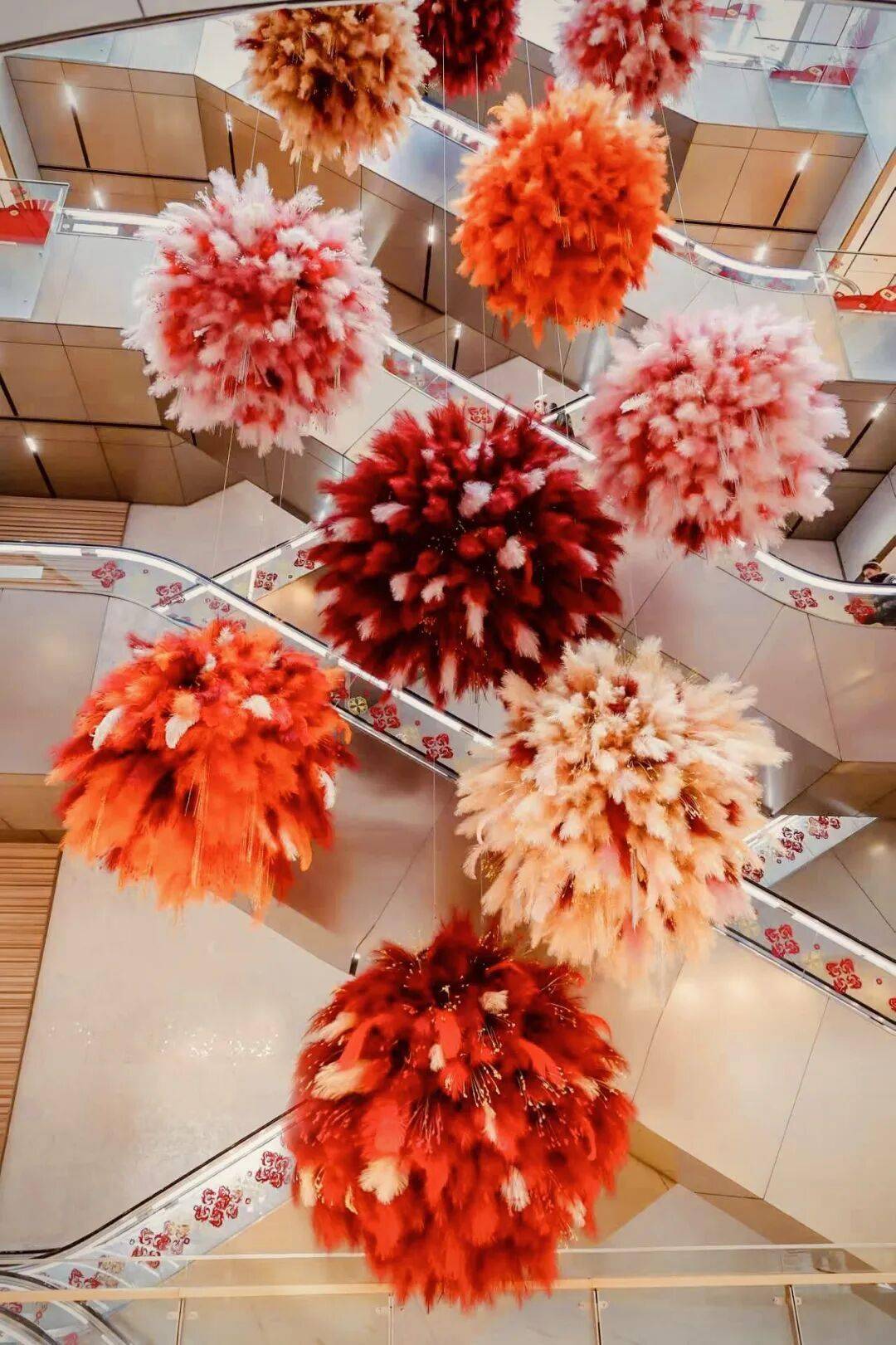 上海芮欧百货以“白日烟花 春意盎然”限时装置拉开马年新春序幕。中庭凌空花艺以暖金、红褐交织叠染,定格烟花绽放之瞬;羽毛与金纹铺陈肌理,步履过处花艺轻曳,复刻烟花坠地轨迹,构筑可穿行的春日诗境。