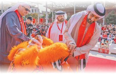 在阿联酋迪拜的“温暖迎春·欢乐春节”大巡游活动上,当地嘉宾为醒狮点睛。本报中东中心分社 塔里克·易卜拉欣摄
